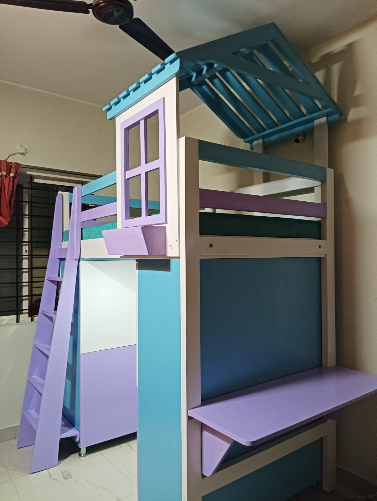 WOODEN HUT MODEL LOFT BED. UPPER COT