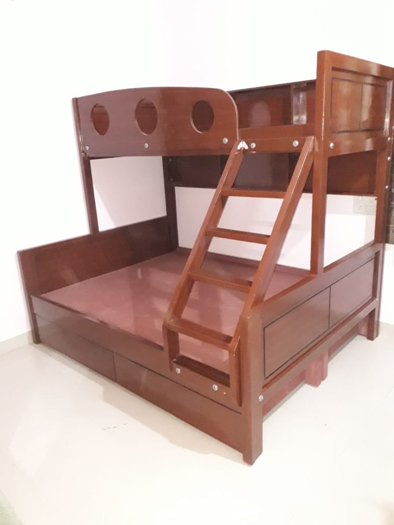 BUNK BED( Kids or family Bunk Bed ) 10Years of Warranty !Durability !Strength !Quality- Life time No Breakage, No shrinkage, No Insect attack Product Specification: Bunker Bed With Good Furnishing and finishing Deco-paint finish 100% Wooden Model Number: bunkerbed-sl-04139000 Place order- Recognize catalogue Designs--Give a Call and Place your Order Storage: with Storage Material : Ply Wood Platforms and 100% Pine Wood Delivery Charges: Free! Free! Free! for Bangalore zone customers Mattress: No mattress Size- Down Size- Queen Size(5'x6'6")+ Upper platform size 3'x6'6" color-Any color Warranty-10 Years of Warranty if any Problem in the product will solve it within 48hours, But no return or change of order once the order has been placed