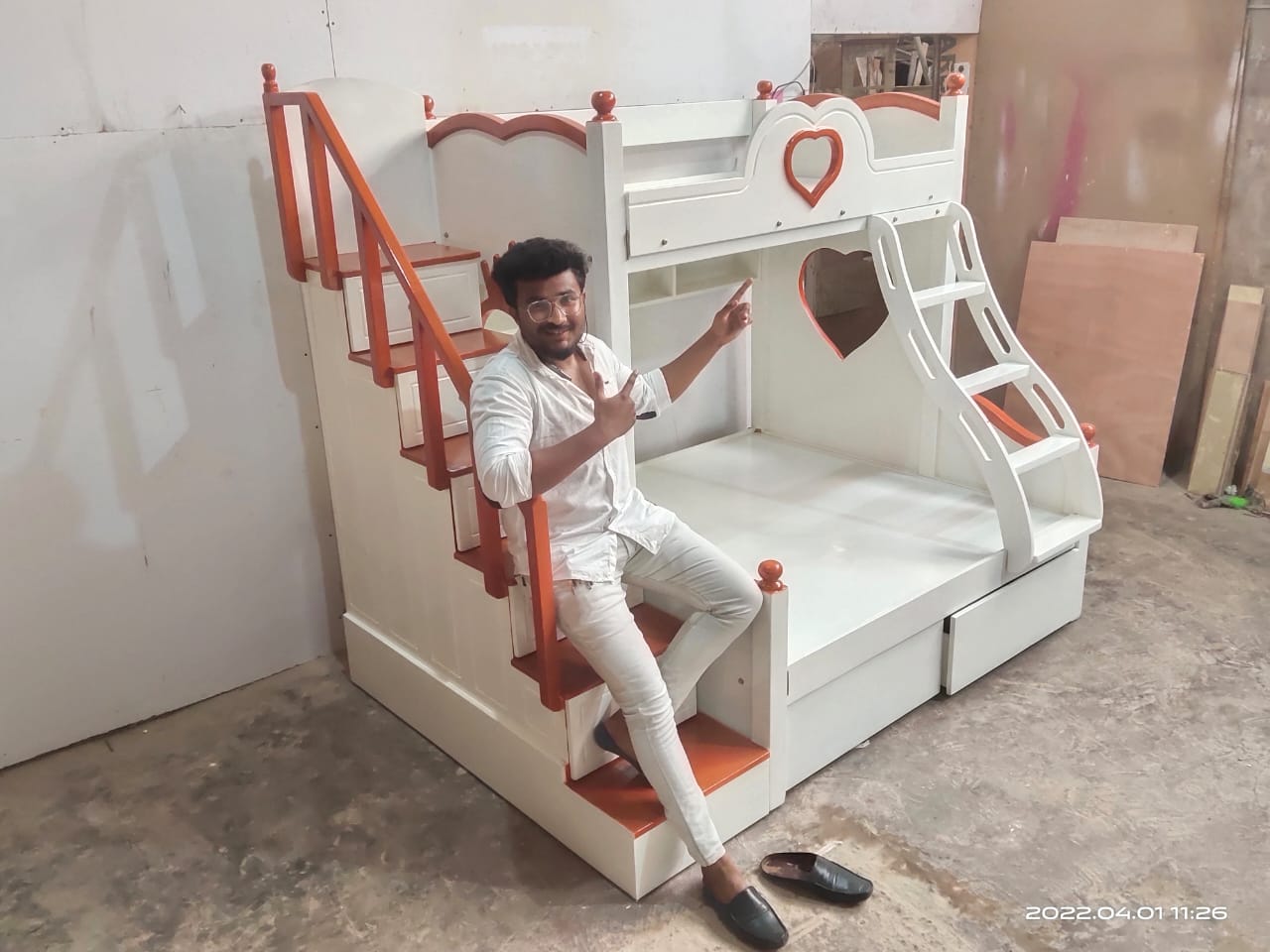 Kids Wooden House Bunk Bed ;- * A Kids Wooden House Bunk Bed is a specially designed bunk bed made from durable wood, shaped like a small house or cottage. It features two levels (upper and lower beds) and often includes playful architectural details like windows, a roof-style frame, and stair access. This bed is not only a place to sleep but also a fun, imaginative space for children to play, read, and relax. ✨ Key Features :- 1. House-Shaped Design :- 1. The bed frame is designed to look like a miniature house, complete with a roof outline, open windows, and decorative elements. 2. This creative structure makes the bed feel like a little home, sparking imagination and role-playing activities. 3. Some versions even allow for hanging curtains or lights to create a cozy atmosphere. 2. Durable Wooden Construction:- 1. Made from high-quality, solid wood such as pinewood and plywood. 2. Strong and stable structure ensures safety and long-term durability. 3. Finished with non-toxic, child-safe paint or varnish, available in natural wood tones or fun pastel colors. 3. Bunk Bed Configuration Includes two sleeping areas: * Lower bunk: Close to the ground, perfect for younger children or toddlers. * Upper bunk: Accessible via stairs, suitable for older kids. Maximizes floor space, making it ideal for shared rooms or small bedrooms. 4. Beautiful Window Cut-Outs:- 1. Stylish window designs are built into the side panels and house frame. 2. Allow natural light to pass through and give a charming, open look. 3. Encourage children to play, peek out, and engage with their space creatively. 5. Storage at the Bottom:- 1. The bed includes built-in drawers and compartments under the lower bunk. 2. Great for organizing toys, clothes, books, or blankets. 3. Helps keep the room tidy and clutter-free, teaching kids organization habits. 6. Easily Climbable Steps:- 1. Instead of a traditional ladder, the bed includes a staircase with wide steps. 2. Safer and easier for kids to climb — especially for younger children. 3. Steps are often designed with handrails and side panels for extra support. 7. Storage in Steps :- 1. Every step of the staircase can double as a pull-out drawers. 2. Ideal for storing small items like socks, toys, or school supplies. 3. A clever use of space that adds functionality without taking up extra room. 🎯 Benefits for Kids and Parents ✔️ For Kids: * Encourages creative play and independent sleep routines. * The 'house' structure creates a feeling of safety and comfort. * Fun and interactive design promotes imaginative thinking. ✔️ For Parents: * Saves space by combining sleeping, storage, and play areas in one unit. * Helps in organizing the room and reducing clutter. * Adds a decorative, stylish touch to the child’s bedroom. 📐 Customization Options :- 1. Can be painted in various colors (Any colour shades.) 2. Available in different sizes (Any sizes customised.) 3. Optional add-ons: curtains, fairy lights, mattress bundles, or extra guardrails. 📞 Book Your order Today! 📧 Email: s.l.woodworksnow@gmail.com ☎ Enquiry;- 6362119197 ( WhatsApp/ Call) 📍Address:- S.L. WOOD WORKS Near Bharath Petrol Bunk off Set Govt High School Vishwa Priya Layout, Begur Rd, vishwapriya layout, Begur, Bengaluru, Karnataka 560068.